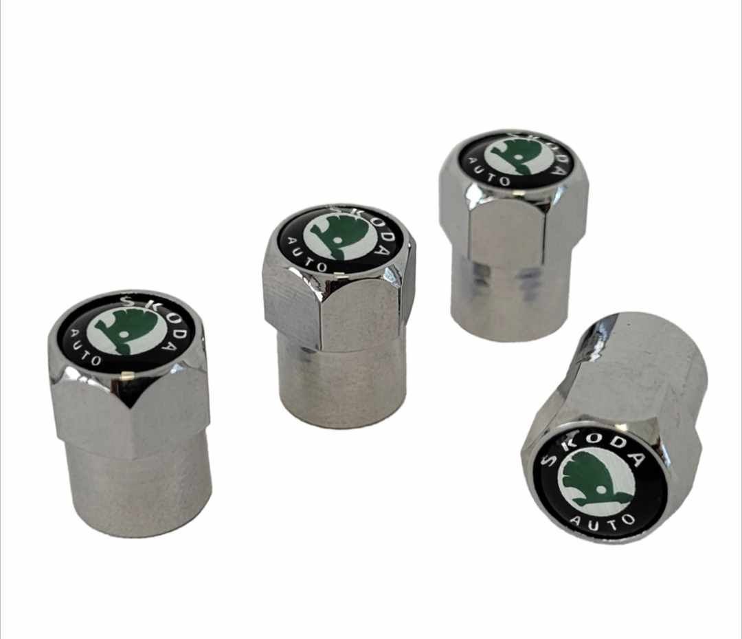 Nakrętki na wentyle SKODA srebrne kapturki aluminiowe zestaw 4 szt
